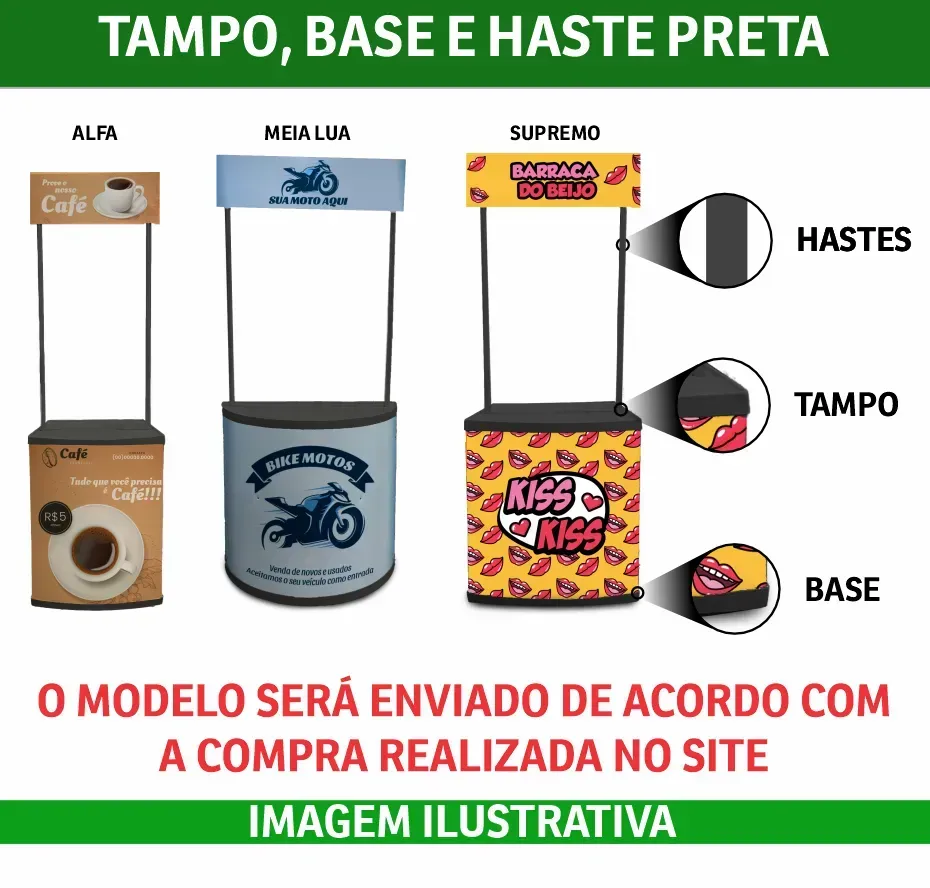 Logo abaixo / SOMENTE O TAMPO, BASE E HASTES SÃO PRETOS. O CORPO E A TESTEIRA SÃO ENVIADOS NA COR BRANCA PLOTADO C