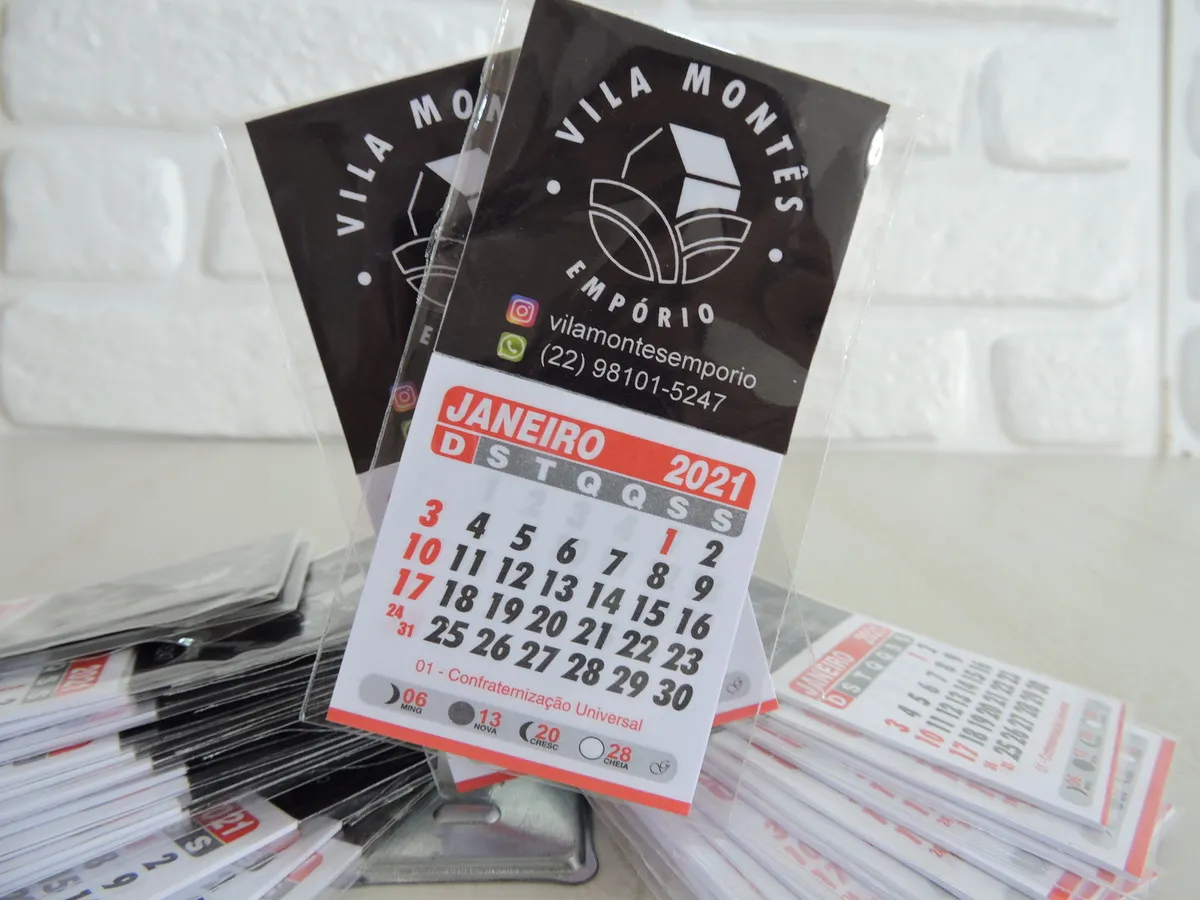 Papel:  Supremo 250g com verniz total frente + calendário padrão 2023  |